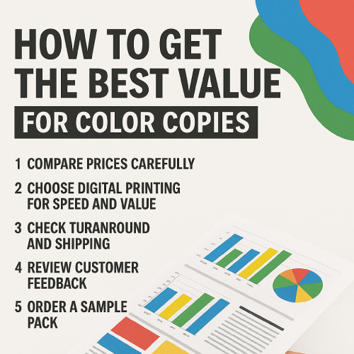Finding the cheapest color copies online doesn’t have to mean taking risks with quality. By comparing total value, checking turnaround time, and ordering from a trusted provider, you can get crisp, vibrant prints at unbeatable prices. Whether you’re printing marketing flyers, manuals, posters, or presentations, a professional online printer like BestValueCopy.com can deliver affordable, high-quality color copies—fast.